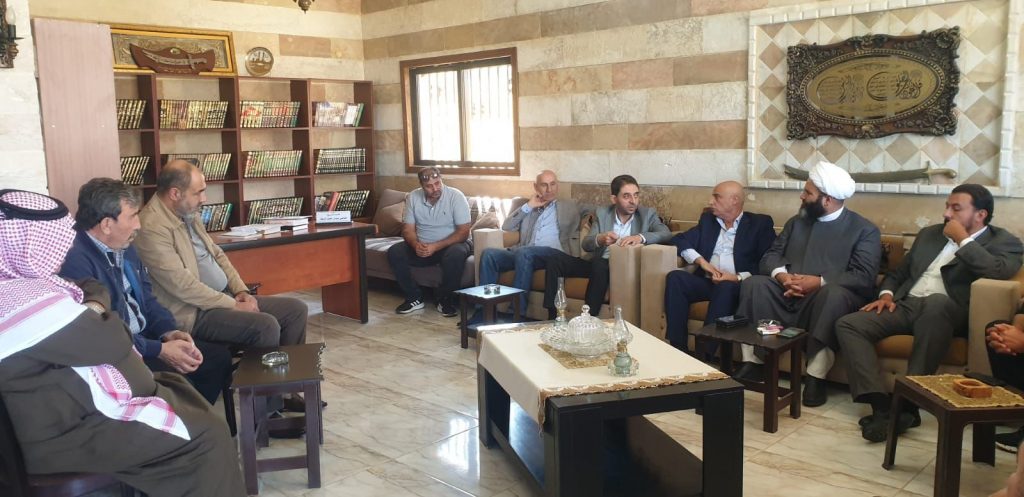 رادار نيوز – نظم لقاء موسع في منزل فضيلة الشيخ القاضي عباس شريف برعاية سيادة اللواء مالك شمص وحضور د. هشام أمهز ومشاركة رئيس بلدية عرسال الأستاذ باسل الحجيري والمختار محمد عزالدين ووفد من آل جعفر وآل أمهز وبعض فعاليات بلدة اللبوة.