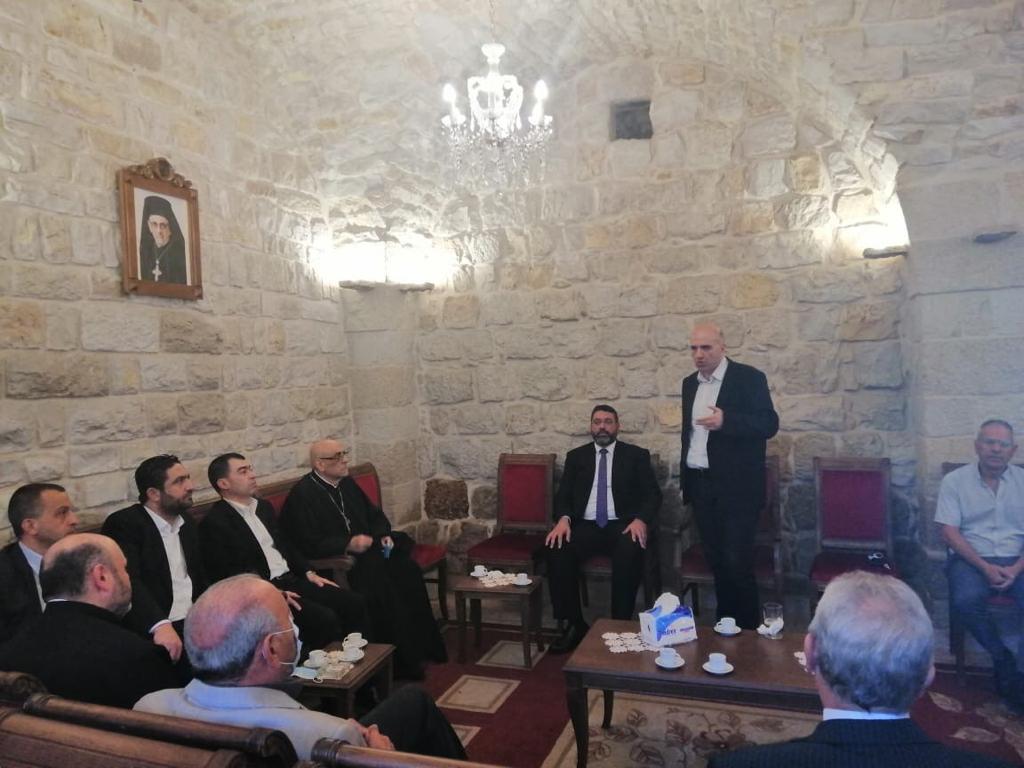 ثم عقد اجتماعا في الدير مع نواب قضاء عاليه سيزار ابي خليل، انيس نصار، الوزير السابق صالح الغريب ممثلا رئيس الحزب “الديموقراطي اللبناني” النائب طلال ارسلان، طارق الكيماني ممثلا النائب اكرم شهيب والحزب “التقدمي الاشتراكي”، رئيس “جمعية الطاقة الوطنية” غسان خوري، الى رؤساء بلديات القضاء، في حضور الارشمندريت خضري والاب عبد، ورئيس مصلحة زراعة جبل لبنان المهندس عبود فريحة، رئيس دائرة التنمية الريفية والثروات الطبيعية في جبل لبنان المهندس جورج خوري ورئيس المركز الزراعي في عاليه ربيع العلي، وجرى عرض لاوضاع القطاع الزراعي في قضاء عاليه والمشاريع والبرامج التي تقوم بها وزارة الزراعة.