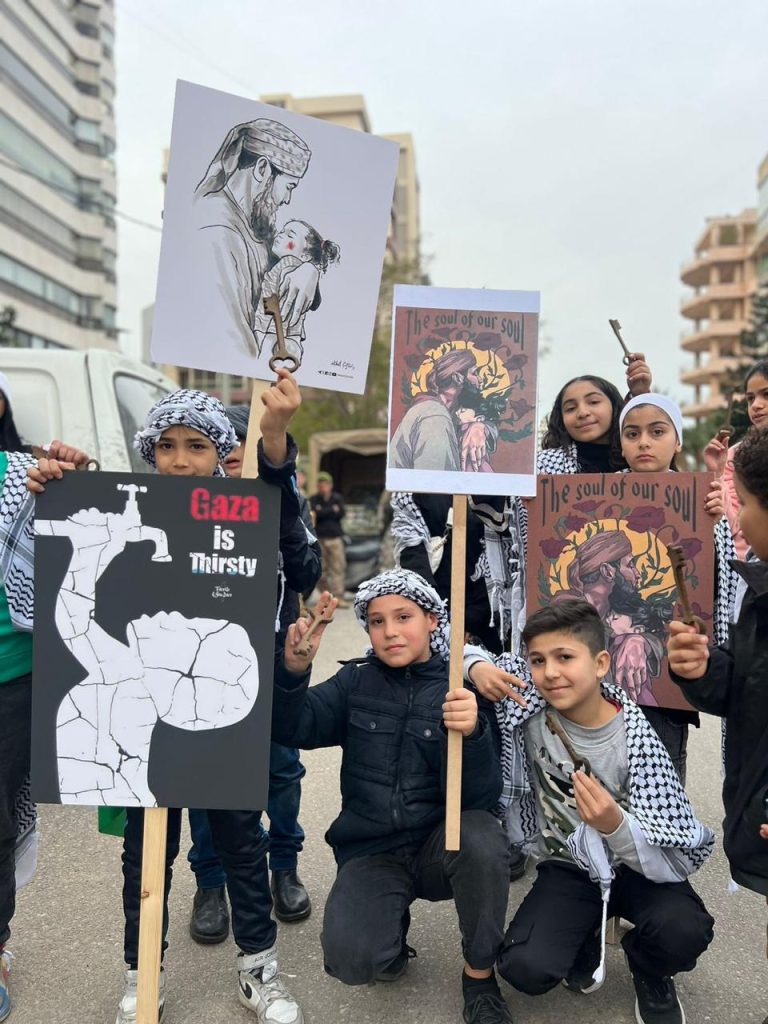 نظّم ناشطون من المجتمع المدني وأطفال من المخيمات الفلسطينية في لبنان “وقفة سلميّة” بعد ظهر اليوم الجمعة 23 \ 2 \ 2024 أمام سفارة جمهورية مصر العربية في منطقة الجناح وقد حمل المشاركون في هذه الوقفة صوراً عن الجرائم الإسرائيلية الوحشيّة المرتكبة بحق أهالي غزّة وجنوب لبنان والأعلام اللبنانية والمصرية والفلسطينية.